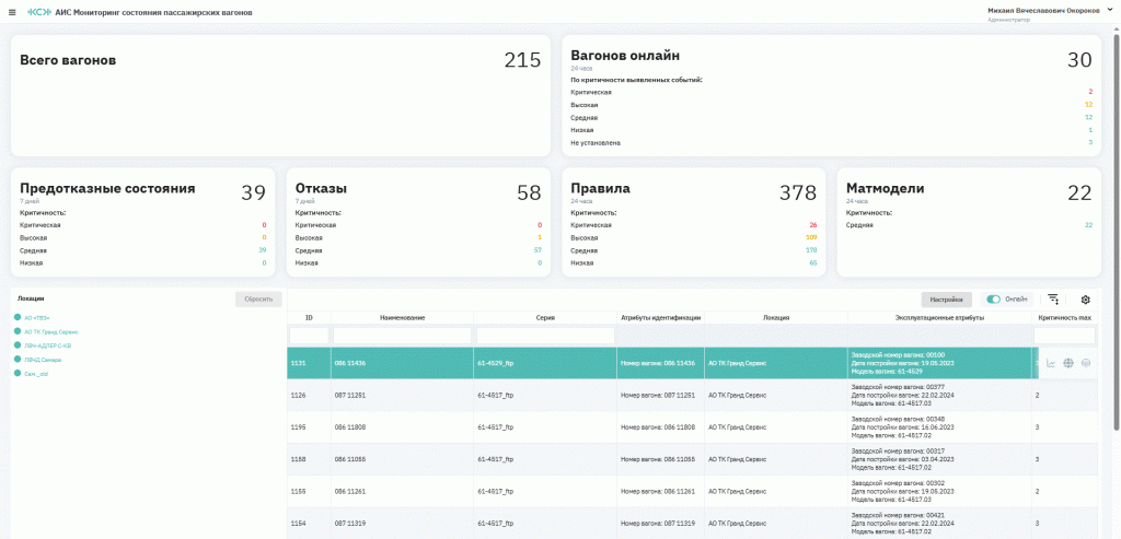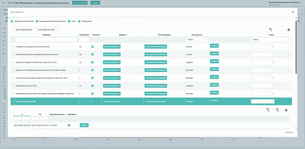 система в автоматическом режиме выявляет отказы и предотказные состояния вагонного оборудования включая неочевидные и кратковременные отклонения, которые невозможно зафиксировать вручную. Для каждого события формируются рекомендации по устранению для ПЭМ и сервисных организаций;